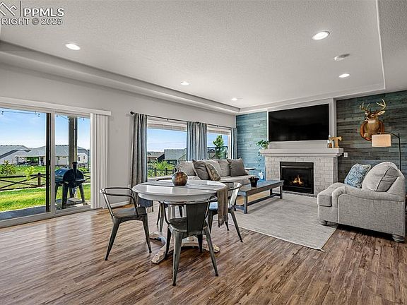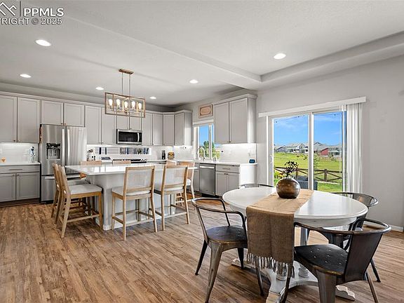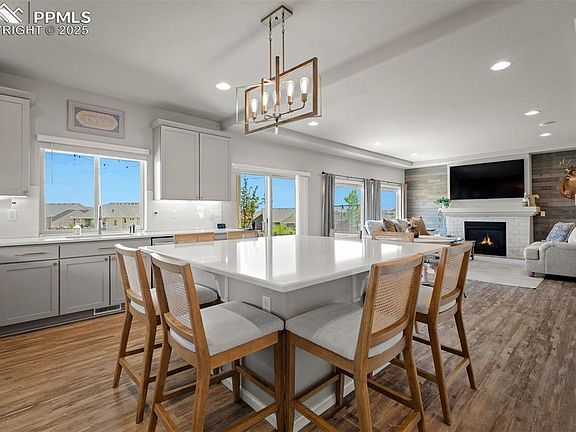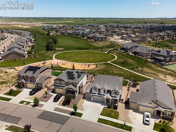 Welcome to this stunning 6-bedroom home in the highly sought-after Banning Lewis Ranch community, perfectly situated on a lot that backs to parks and open space for added privacy. Just walking distance to top-rated schools, parks, and trails, this home offers the perfect combination of space, style, and location. Step inside to an open and airy layout filled with tons of natural light and solid surface countertops throughout. The heart of the home is the chef’s dream kitchen featuring a gas cooktop, walk-in pantry, large island, and expansive workspace—ideal for hosting or day-to-day living. The kitchen flows seamlessly into the open-concept living and dining areas, complete with access to a covered back patio that overlooks a spacious backyard with fruit trees and a raised garden bed. On the main floor, you’ll find a versatile office or flex space with charming barn doors, perfect for working from home or a guest room. The giant master suite upstairs is a true retreat, featuring an en suite bathroom, solid surface counters, and a generous walk-in closet. With six total bedrooms, there’s room for everyone—plus plenty of storage throughout. A three-car garage adds even more functionality, equipt with EV hook up in garage. The home’s thoughtful layout and quality finishes make it truly move-in ready. Don’t miss the opportunity to own this beautifully maintained home in one of Colorado Springs’ most desirable neighborhoods!