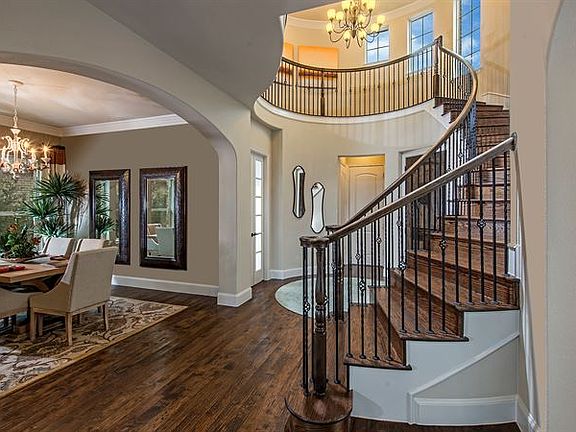 This home features a breathtaking rotunda foyer with extensive wood floors and sweeping circular staircase. A warm and inviting study is just off the foyer. The bright and spacious family room features a two-story ceiling and windows overlooking the outdoor living area. The family room seamlessly connects to the gourmet kitchen with tall custom cabinets, extensive countertops and walk-in pantry. The charming breakfast room is complimented by large bay windows overlooking the outdoors. Relax and rejuvenate in the spa-like owner's bath and private owner's suite. A privately located guest suite is also on the first floor. Follow the spiral staircase to the game room, three spacious bedrooms and two baths, along with a media room perfect for entertaining.