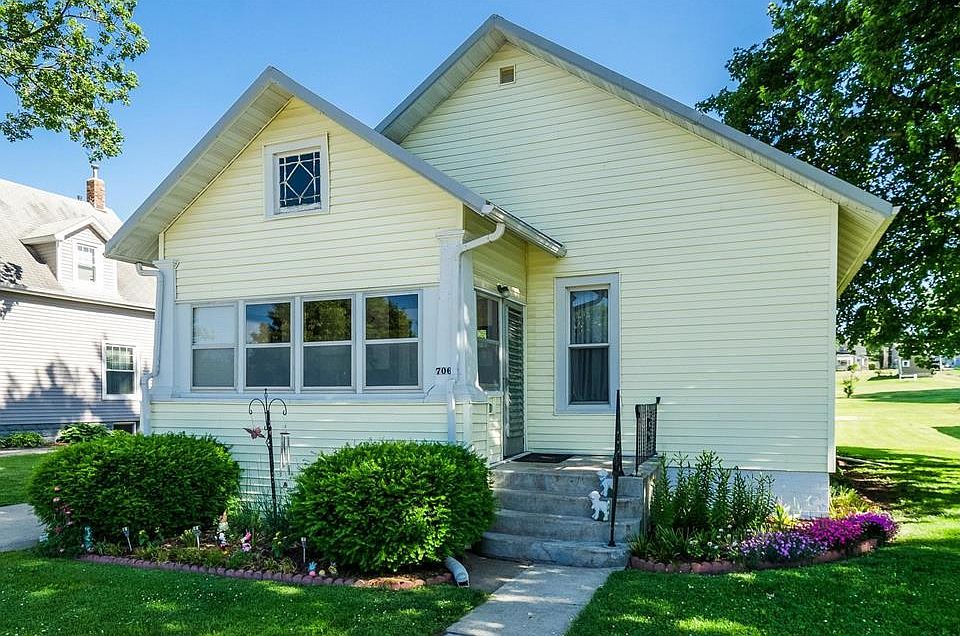 Cute and charming one-story home right across the street from a city park! Enclosed front porch with a view to the south to look over the park. Arch doorway in the living room area, newer carpet, jack and jill bath separates the two bedrooms. Kitchen has some original built-ins. Newer steel roof on the home. Spacious yard, detached garage and appliances round out this great home in Belle Plaine!