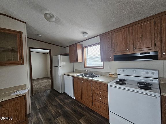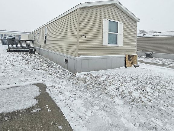 Beautifully updated with fresh paint and flooring this open concept mobile home with split floor plan features large open kitchen with small divider bar separating the living room for entertaining. The Homes airy well lit living space is perfect for entertaining with lots of elbow room, a Large sectional couch should fit perfect. 2 good sized bedrooms and a shared bathroom are on one side and the Primary bed and bath on the other. rounded bath tubs on both bathrooms makes it easy to relax in after a long days work. Step off onto the Large deck with ramp in the mornings or evenings and enjoy your favorite beverage with the sun rise or set.