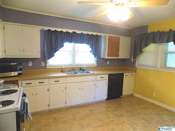 Hardwood floors, spacious floor plan design, nice level lot with partial privacy fencing Window World windows 2016 ,Central heat and air natural gas package,New roof 2013, stove and frig remain, nice carport. Located near schools, hospitals. Easy commute to Huntsville and Lake Guntersville
