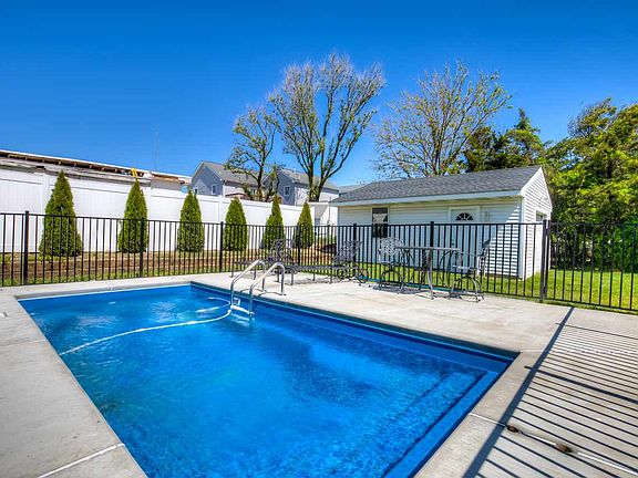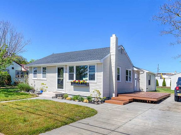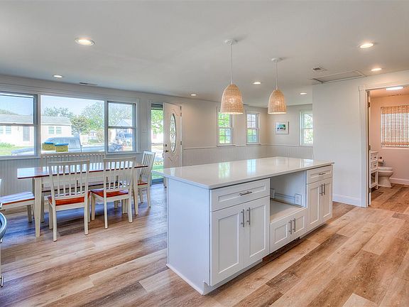 Beautifully renovated sprawling rancher bay block home with brand new pool. Open floor plan concept with new white cabinet kitchen with light quartz counters, large center island, brand new stainless steel appliances, extensive recessed lighting, wainscoting, many windows, and wonderful new wood floors. 2 new bathrooms, one with subway tile shower, stylish vanity and light fixtures and full size stack washer and dryer. 3 bedrooms, 2 of which are oversized, and an additional hall bath with walk-in shower. The yard is newly landscaped with sod, gardens, and plantings and has an oversized deck for entertaining, extra wide driveway, detached garage, brand new outside shower/changing area, and brand new 4"deep pool with patio for lounge chairs and table. New privacy fence in rear and around pool, new hot water heater and freshly painted. Enjoy your own beach resort surrounded by sunsets and fresh air!