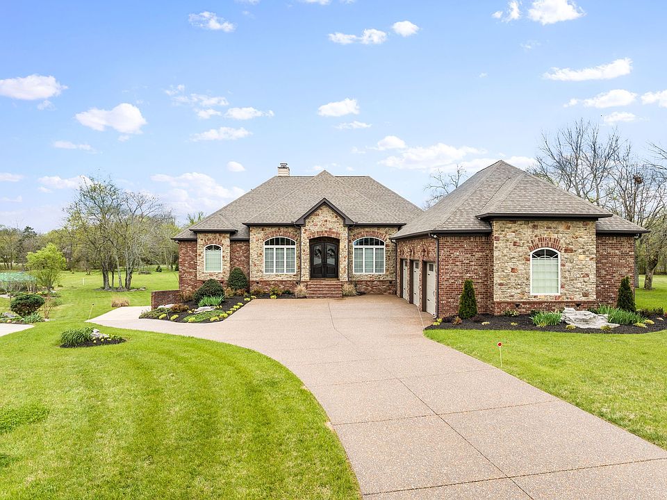 Welcome home to this stunning one-level main floor living with a full finished basement perfect for multi generational living, nestled on a generously sized 3 acre lot in a cul-de-sac offers a blend of privacy and security. 3 bedrooms and 2 1/2 baths on main level with open living concept, hardwood floors, well appointed kitchen, office, large utility/mudroom, large covered porch and 3 car garage. Basement level offer 2 additional bedrooms, family room, plumbing in place for a future kitchen and additional lower level garage. The backyard offers so many opportunities and does have a beautiful area for shaded entertaining and firepit for large gatherings. This property promises ample space for relaxation and rejuvenation just 8 minutes to shopping and schools.