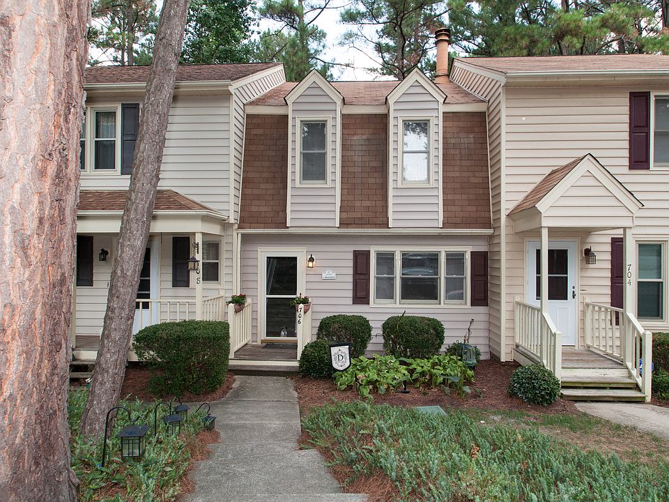 Two master bedroom townhome in a fabulous North Raleigh neighborhood. Community pool & tennis court. Updated HVAC (2003). Laminate floors on main level. New lights fixtures in kitchen, living room, hallway, and exterior. New tile back splash, dishwasher, and smooth top stove. New toilets, sink, and faucets in bathrooms. New deck overlooking private wooded area. Masonry fireplace with gas logs in living room. Both bedrooms offer walk-in closets and private baths. Convenient to North Hills Mall, fabulous dining, I-440 & I-540.