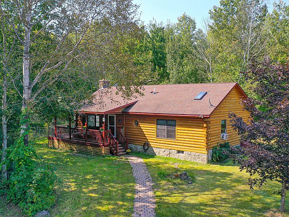 Come take a look at this true log home situated in the quiet town of Sebago. Nestled on +/-6.7 acres, you'll find this 3 bedroom, 2 bath Ranch with a partially finished basement and 2 car detached garage. The location is private, peaceful and well landscaped with wild blueberries, blackberries and raspberries. The farmers porch and wrap around deck offers great outdoor living to sit back , relax and entertain. In the kitchen you'll find granite counters, a center island and wood floors. Cathedral ceilings, skylights and knotty pine walls give this home a warm open concept feeling. Equipped with a generator hook-up transfer switch. The Town of Sebago also has a beautiful sandy beach for residents only! Close to apple orchards, hiking trails, snowmobiling and ATV trails.