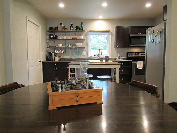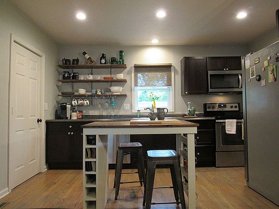 2% commission will be paid to buyers agents. This cozy single family home comes with three bedrooms each with their own closet. Master comes with built-in storage and his and her closets. Open concept full kitchen and front room living area combine to create a large space perfect for entertaining. Roomy full bathroom has an extra wide tub and barn door vanity along with linen closet storage. Included appliances: dishwasher, refrigerator, electric oven and stovetop, microwave, and washer and dryer. All hard wood floors (re-finished 2018). Spacious backyard with 6ft privacy fence (2019) comes with a back porch and built in brick fire pit. One car garage has room for tools and comes with attic lit storage. Driveway provides extra 2 car off-street parking. **optional** three pieces of handmade furniture come optional with home. Fold out murphy table, wooden bench with storage underneath, and island/spice rack.
