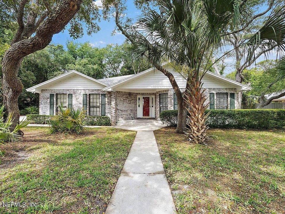 Welcome to this rare gem nestled on an oversized cul-de-sac lot with lush palms, majestic oaks and mature landscaping that offers a private, secluded atmosphere. This all brick home is a tranquil retreat tucked away yet enabling you to walk or bike to the beach, Jarboe Park and popular dining spots. Originally crafted by a custom home builder for his own family. There are 2 HVAC units-one brand new! Roof, garage door, hot water heater and skylights were recently installed. Step inside to find an inviting open floor plan anchored by a spacious living room with built-in shelving and a brick fplc-a perfect gathering place. The kitchen comes fully equipped with loads of cabinets and counter space, a breakfast bar and pantry. Versatile 3rd bedroom can also be an office. Outside, unwind on the screened porch or grill on the patio. A side entry garage has pull-down attic stairs, workshop with pegboard. Ready for your personal touch and updates! Plenty of room to build outward or upward!