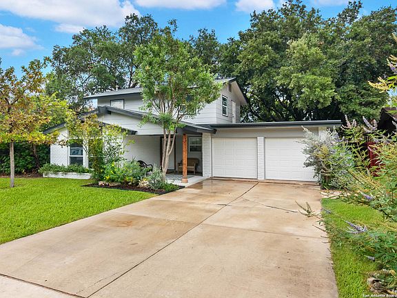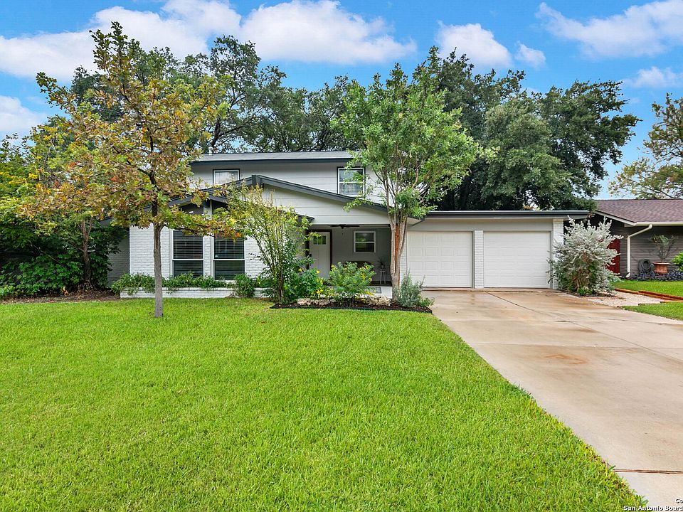 This thoughtfully updated home marries classic aesthetics with modern comfort and style. Beautiful landscaping and a charming front seating area create great curb appeal while a spacious, open floor plan showcases new additions/ features including flooring, counters and backsplashes, appliances, fixtures and finishes. The spacious family room offers a soaring vaulted ceiling with an exposed wood beam and outdoor access. The kitchen includes beautiful granite counters, grey subway tile backsplash, white cabinets, stainless steel appliances, gas cooking and a breakfast bar. The primary suite features dual closets, plus a separate walk-in closet accessible through the bathroom offering a granite dual vanity and walk-in shower. The home offers additional space for seated dining and a flex room, perfect for a 4th bedroom or private study. Upstairs you'll find spacious secondary bedrooms. Outdoors, enjoy a new patio slab with a charming privacy screen overlooking your green back yard surrounded by oak trees.
