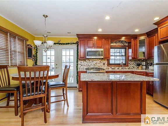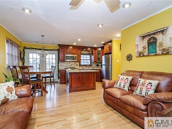Welcome home! This beautifully updated 3 BR 2 Bath Ranch in thriving Perth Amboy boasts features to fall in love with! Charming open front porch is the perfect place to relax w/your morning coffee or star gaze at night. Step in to find gorgeous NEW HW flrs that shine, rec lights & elegant crown molding extend all through. Modern open flr plan makes entertaining easy! Spacious & sunny LR flows right into the Gourmet EIK. Here, find gorgeous granite counters, MOBILE center island, tiled backsplash & rich cherry cabinetry. Sunsoaked Dinette w/French Doors to the patio, too! Down the hall, find the sophisticated main bath, along w/2 generously sized BRs w/ample closets. Finished Basement boasts an impressive Rec Rm, 2nd full bath & 3rd Private BR- ideal for Multi-Gen Living! Laundry rm w/plenty of storage, too. Large fenced-in yard w/sizable patio & shed make outdoor gatherings a breeze. PRIME Location- mins to shopping, eateries, pub transit & more. A TRUE GEM!