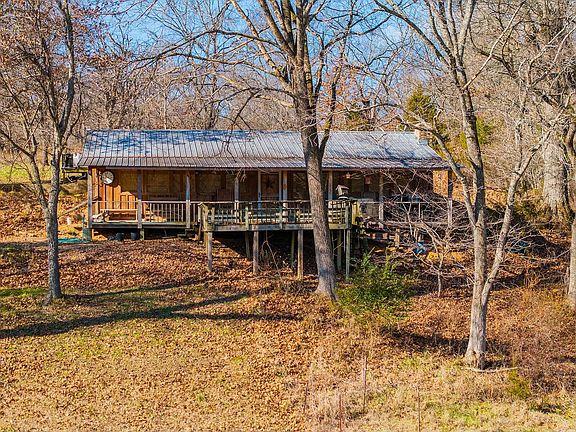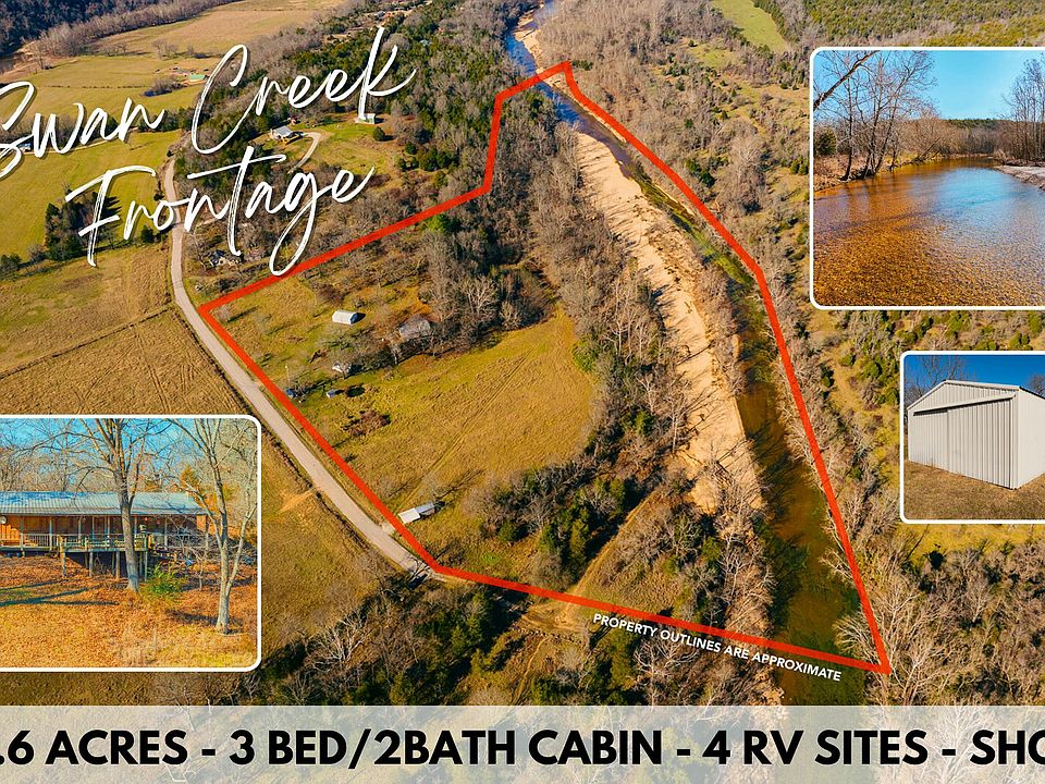 Calling all HUNTERS, outdoor enthusiasts, and vacation dreamers...Come escape to the heart of the Ozarks to this unique cabin/berm style home nestled on 17+/- stunning acres along the serene Swan Creek Valley in Taney County. One-of-a-kind, this property offers the perfect blend of natural beauty and functional living. Surrounded by mature timber and open field, you'll enjoy breathtaking views from the comfort of your covered porch.This property is an adventurer's dream with 4- RV hookups, a spacious shop building, a storage building, and ample usable land--ideal for homesteading, hunting, fishing, or creating the ultimate vacation retreat. Swan Creek is a navigable waterway enjoyed year-round for fishing, kayaking, and exploring, is just steps away with numerous access points and approximate 1,577 feet of creek frontage. Step inside this charming cabin and experience the warmth of its open layout, designed to maximize natural light with plenty of windows that invite the beauty of the outdoors inside. The oversized kitchen is perfect for cooking or gathering, offering ample space for creating memorable moments. With 3 bedrooms and 2 baths, there's room for everyone to unwind in comfort. On chilly evenings, cozy up by the wood burning fireplace and let its warmth create a welcoming ambiance that makes this cabin feel like home. Experience the peace and charm of rural living while staying connected: only 15 minutes to local conveniences and 30 minutes to Branson's medical facilities, shopping, and entertainment.Whether you're seeking a serene homestead, a vacation getaway, or an investment in recreational land, this property delivers. Don't miss out on this slice of Ozarks paradise!