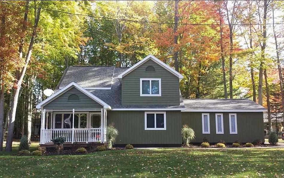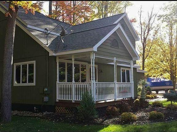 Beautifully landscaped home provides plenty of room for the children, both inside and out! This 4 bedroom/2bathroom home offers a beautiful open kitchen with dining area, a main floor den or bedroom, full bathroom and laundry room with 3 additional bedrooms and 1 bathroom upstairs. This home has a newer roof and carpet, fresh paint inside and out and is turn key ready. The exterior offers an attached 2 car garage with a huge yard, stamped and colored concrete around home for added beauty. Relax in the peaceful settings on either the front covered porch or rear deck overlooking the large tree lined back yard. Close to schools, shopping and restaurants. Take a tour today! Great for a year around home or vacation getaway!!