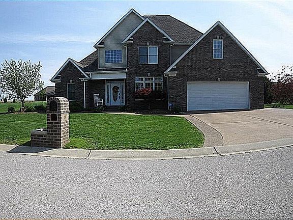 This beautiful exterior architecture with varying roof heights is just the start of the impressive features this 4 bedroom 2.5 bath home has to offer. The heart of this home is the 2 story family room with gas fireplace & french door to the back of the home. The first floor master suite features a lighted tray ceiling, private bath with vaulted ceiling, whirlpool tub, double vanity & walk in closet. The family room and informal living room combine to warm the adjoining kitchen & breakfast area. Custom Amish cabinets, stainless appliances, pantry, breakfast bar and loads of counter space inspire this magnificent kitchen. The 2nd floor offers 2 bedrooms with walk in closets and extra large bonus room or 4th bedroom. There is a full hall bath with double vanity and separate tub/shower area. Accented with lavish landscape burm, patio and .47 acre yard as well as a no outlet cul-de-sac location.