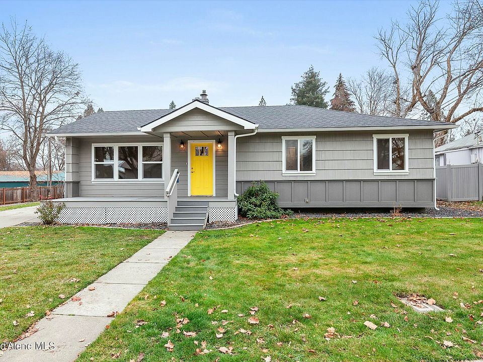 Single level living in this renovated rancher with a full basement in the heart of Coeur d'Alene. Home with 4 bedrooms and 2 baths and beautiful oak floors on most of the main level. Home was completely renovated in 2019 with NEW roof, NEW windows, NEW cabinets, two NEW bathrooms, NEW decks, NEW quartz counters, and BIG composite front porch and back deck.