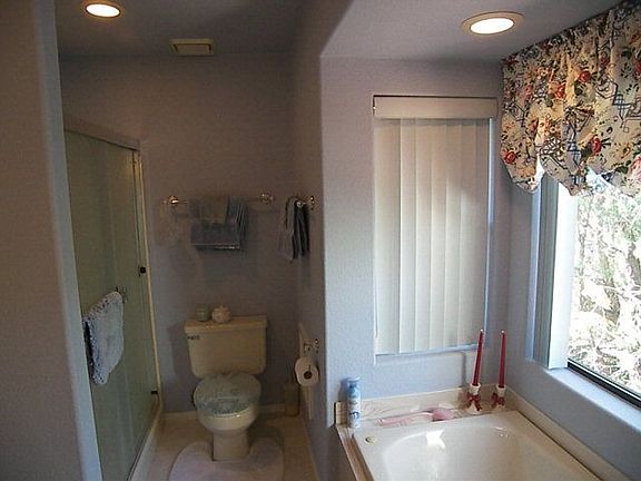 Modern and old world charm meld marvelously in this gorgeous four bedroom home. Bright entry divides master bedroom and the formal dining room featuring shoulder height wainscoting. There are two master bedrooms with this 2181sf beauty. Enjoy views of the Mogollon Rim from the spacious living room with a gas fireplace. Sunny kitchen has a breakfast nook and large covered deck to enjoy the views. Upstairs is an additional two bedrooms and full bath. Home has an unfinished basement that is being used as a workshop and storage area. Fully fenced front and back yards have a drip system and sprinklers for the green grass and mature trees. Home has a two car garage and sits on a cul-de-sac lot.