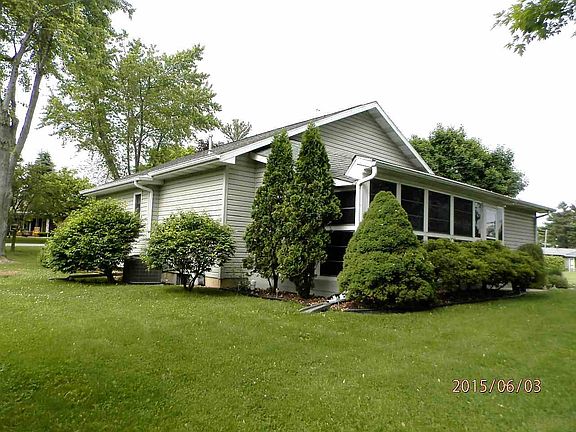 Well kept ranch home on a level .855 acre lot with mature trees, nicely landscaped. Home features 2 bedrooms, 1.5 baths, full basement, large living room with vaulted ceiling, formal dining room, covered porch. Home also features a 11x23 enclosed porch with Easy-Breeze windows, 1.5 car attached garage and a 10x16 shed. Many updates include: screened porch in 2013; furnace & AC in 2010; storage shed in 2014; water heater in 2008; shingles in 2005; kitchen counter & backsplash in 2011; water softener in 2011; interior paint 2011. Decorative rocks & glass rocks are reserved from landscaping.