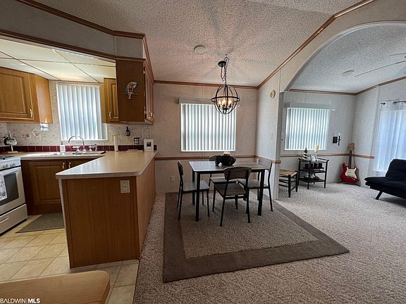 Come see this quaint cozy beach designed home for your new weekend getaway or full time coastal paradise. This cottage has been updated with designer features and new carpet. It is light and bright and is in pristine condition. This 1 bedroom/1 bath home is being sold FULLY furnished and has a cozy front porch to enjoy the Alabama sunsets. This property boasts 960 sq ft with an open floor plan with the kitchen and family room extending onto the sunroom. There are washer and dryer hookups inside the home and the yard has a shed that houses the washer and dryer. Low maintenance landscaping allows you to spend your weekends at the beach. This property is located in the highly desired Land Harbor section of Spanish Cove with low HOA dues ($74/Mo) and is only minutes from the Lillian Boat launch and 15 minutes from the sugar white beaches of the Gulf of Mexico. Owners have membership with a lifestyle full of amenities and low POA Dues of only $74/mo (includes trash pick-up). There is something for everyone: key fob access to all facilities, 24 hour security, two clubhouses to host events and club meetings; year-round junior Olympic sized swimming pool with aquatic classes; tennis courts (tennis club); basketball court, fitness facility, playground, public shower area, shuffleboard court, and nature trails. You can join the community-organized activities like Bingo, card and game nights, book clubs, garden club, and enjoy group travel opportunities. If you like to relax, you can spend the day at the Spanish Cove beach area or fishing from the 500-ft pier enjoying the famous Alabama sunsets, check out the neighborhood lending library with puzzles and movies, public showers and a laundry facility is on site for your convenience. Watch the sunset while taking a stroll around this lovely golf cart community.