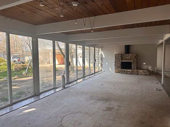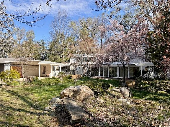 A unique mid-century home designed by architect Harry Weese, offering over 4,000 sq ft of living space across three levels. This property presents a rare opportunity for restoration, with incredible potential to be brought back to its former glory. The main floor features two versatile office spaces that could serve as additional bedrooms, a kitchen with custom German-built cabinetry, and an open-concept living and dining area with expansive glass sliding doors. A bedroom with a walk-in closet and a full bathroom completes this level. Upstairs, you'll find another spacious living area and a primary suite with an en-suite bath and two walk-in closets. A spiral staircase leads to the third bedroom, previously used as an additional closet. Centrally located and just blocks from the Champaign Country Club. This home is being sold AS-IS.