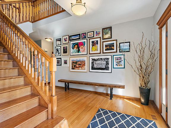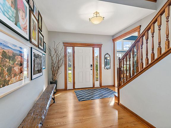Walk out the back gate and take the path for a quick and easy walk to downtown Geneva! This custom-built home located on almost a 1/2 acre lot is minutes from downtown Geneva in the distinguished Fox Run subdivision. This homes offers SO MUCH LIVING SPACE including: 5 bedrooms (all with walk-in closets), first floor den and 4-1/2 baths. The first floor has hardwood floors and graceful accent moldings ~ Formal living & dining rooms ~ Custom built "cubbie area" adjacent to garage ~ Loft has new custom book shelves ~ Spacious kitchen with breakfast bar, walk-in pantry, double ovens and tons of cabinets and counter space ~ Newly finished deep pour English basement with custom stone fireplace, media room with projector, screen & built-in speakers plus a full bath ~ The primary suite has a walk-in closet plus large bath with dual sinks, tub, separate shower & linen closet. For guests or multi-generational living, the 5th bedroom has an ensuite arrangement. Sliding doors on first floor open to to deck, large paver patio, playset & fully fenced manicured yard. The 3+ car garage has extra storage and utility sink. This home boasts 3-zone HVAC, whole house vac and much more! Easy access to downtown Geneva on the Fox River Trail behind home & under the bridge. Close to Settler's Hill Champion golf course and park, this neighborhood offers a great social network of activities including summer patio crawl, holiday light walk, Easter egg hunt, block parties, food trucks and kid's (and grown-up) Halloween fun and more. . MOVE IN AND ENJOY!