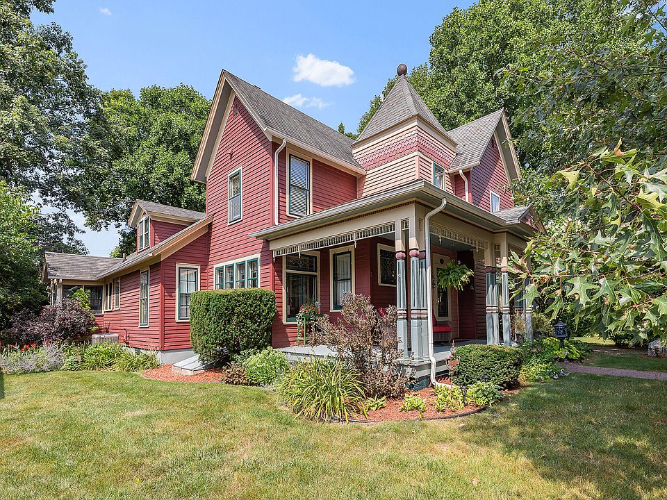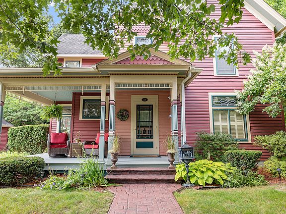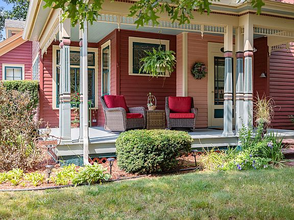 This beautiful historical home features a charming front porch and a spacious back deck, along with a gazebo and a detached two-car garage. Many recent updates have been made to enhance the home while preserving its original character, including natural hardwood floors and restored woodwork throughout. The kitchen boasts stone countertops and stainless steel appliances. The main level includes a living room, dining room, office, and two additional rooms currently used as a bedroom and a second living area. Upstairs, you'll find three bedrooms, one full bathroom, and another living area. The home also offers large closets throughout for plenty of storage. The basement includes another office space, a laundry area, a shower, and ample storage. The beautifully landscaped yard is set on three lots, providing a serene and spacious environment.