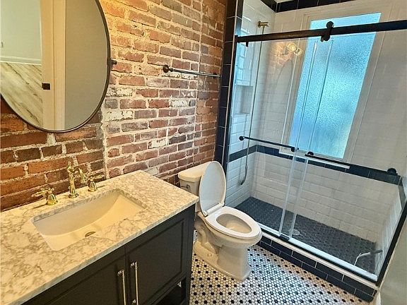 Exposed brickWalk in showerBrand new appliancesWasher and dryer
