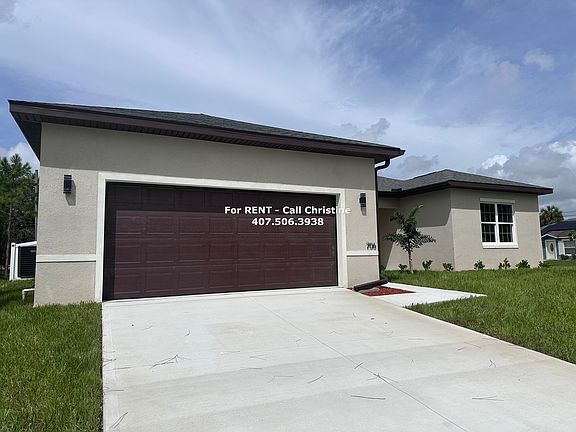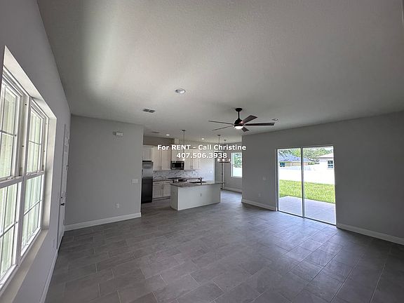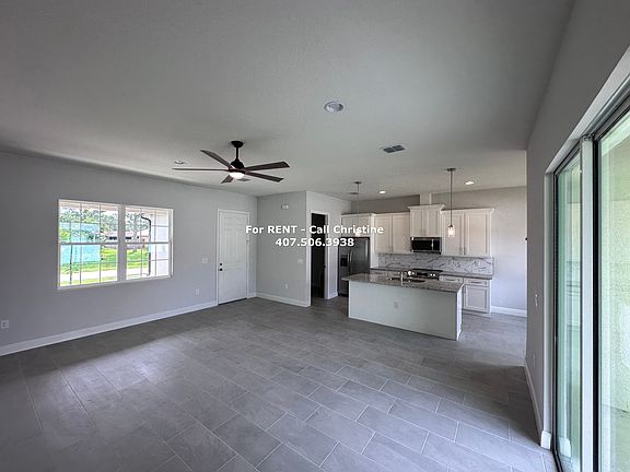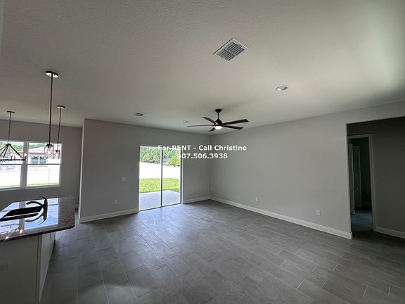 Welcome Home to this NEW 2024 Home. This family-friendly layout boasts 4 bedrooms, 2 full bathrooms, and a generous 2-car garage. The open concept plan with 10ft Ceilings and 8ft Doors flows from the kitchen that seamlessly connects with the living and dining areas. The kitchen itself offers plenty of space with beautiful wood cabinets, stainless steel Energy Star appliances, making your time efficient and enjoyable. Modern Tile Floors throughout provide durability and clean beauty. The Welcoming Front and Rear Lanai's make this home inviting and you will LOVE the Vinyl Fenced Yard with 5 foot gate for easy access. The Large Corner Lot provides space and privacy to make your time at home peaceful and family oriented. From the digital thermostat Super Efficient 15.2 SEER rated heating, ventilation, and A/C system to the roof vent and soffit for efficient attic ventilation, and dual-pane energy-efficient windows, every aspect has been meticulously designed to enhance comfort and sustainability. Tenant