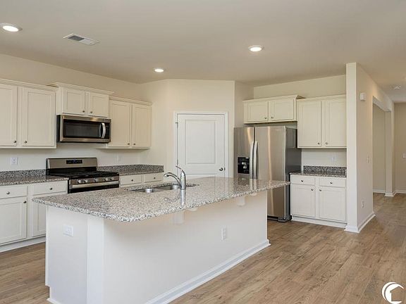 The Elle floor plan offers plenty of space with room to grow. Featuring a first floor primary bedroom suite with generous bath, walk-in closet, and linen closet. The kitchen boasts a large island with breakfast bar and opens to the casual dining area and spacious living room. Granite countertops, 36" painted cabinetry, stainless appliances, and beautiful laminate wood flooring throughout the main living areas all included! There is also a wonderful flex space on the main level that could be a dedicated home office or a formal dining room. Sliding glass doors off the dining area leads to the rear covered porch for added outdoor living space. Upstairs offers large secondary bedrooms plus an expansive secondary living area. It gets better- this is America's Smart Home! Control the thermostat, front door light and lock, and video doorbell from your smartphone or with voice commands to Alexa. Tankless gas water heater and a two-car garage with garage door opener also included. *Photos are of a similar Elle home. (Home and community information, including pricing, included features, terms, availability and amenities, are subject to change prior to sale at any time without notice or obligation. Square footages are approximate. Pictures, photographs, colors, features, and sizes are for illustration purposes only and will vary from the homes as built. Equal housing opportunity builder.)