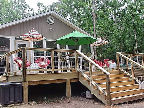 LAKE LOT on the water, Clarks Hill Lake, with cook house, use as your Man Cave or She Shed, 500 square feet. Unique lake property was an old fisherman's cabin, recently remodeled, added new deck, kitchen cabinets, farmhouse sink, light fixtures, flooring, opened up the floor plan to create a fun inviting entertainment area. Completely rebuilt from slab keeping the old rock fireplace. No bathroom or bedroom (many years ago a mobile home was removed from the property. The cottage was used for cooking, parties, card games, and hanging out). Property has a pump up septic system on a large 1.4 acre nicely landscaped lot, RV's welcome. Motorhome (not included or for sale) connected to septic system. City water and fiber optic cable. This property is great for building a new home or adding onto the existing cottage. Build your dream home on the cleared lot and use the cottage for cooking/entertaining. Has a swim platform dock and the cove was dredged for deepening the water. Really great neighborhood in the Little River Cottage Sites/Savannah Lakes. No HOA fees. A metal storage building with windows remains with the property. Private neighborhood boat ramp at the end of my cove. The property is For Sale By Owner, Paige Edmonds 803.341.2565. 706 Holiday Road, Mccormick SC 29835