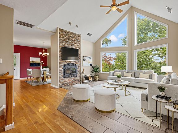 Welcome to the perfect spot for lake living! Nestled on Herrington Lake, this beautiful home boasts sunset views from the living room, primary bedroom, and multi-tier deck for a daily retreat in your own home! Inside features an inviting living area, with a woodburning fireplace adding a cozy touch for fall evenings. The kitchen boasts an induction cooktop on a large island and offers plenty of space. The formal dining room and den provide ideal spaces for work and entertaining. There are 3 bedrooms, including an open primary suite with twin vanities, a soaking tub, and ample closet space. The main level also features a large laundry and craft room. The downstairs is an entertainer's dream--built-in wet bar, plenty of storage, and easy access to the outdoors and deck. Additional features include a new roof with high wind-resistant shingles, solar panels with a transferable warranty, and a completed home energy audit, resulting in extra insulation and weatherstripping for improved energy efficiency. Directly across from the Peninsula Golf Club, owners also have access to a private marina and boat ramp on Herrington Lake, with boat slip available. Don't miss out on this one!