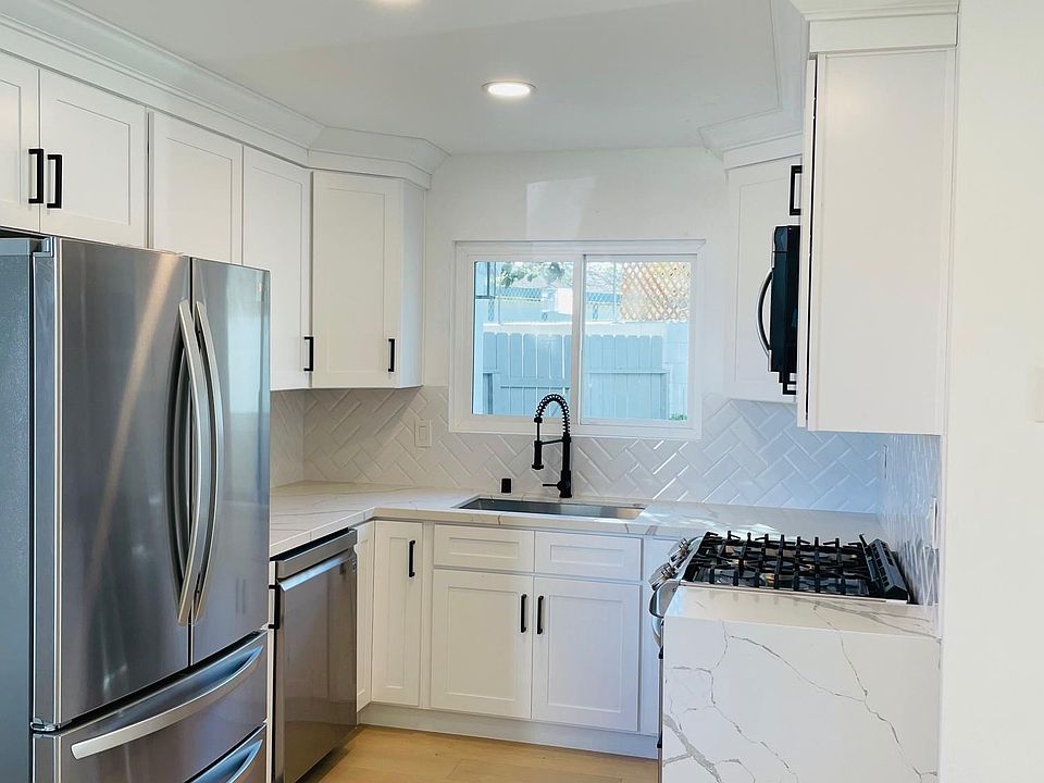 Your newly remodeled coastal townhome ready for summer! This ocean close beauty has luminous finishes, abundant amount of natural light and boasts modern amenities and impressive detail at every turn. Upon entering you'll see wide plank french oak hardwood floors, modern entertaining Kitchen and living/dining area all overlooking your private backyard space. The elegant Kitchen has all new appliances, quartz counters, beveled herringbone subway backsplash, along with custom white shaker cabinetry. Off the living room, you have a main floor bedroom with a sliding door to your private backyard, and an attached marble bathroom. Up the stairs offers two Spacious bedrooms with vaulted ceilings, a large stylish double vanity bathroom with herringbone marble floors. The light and bright bedrooms feature an outdoor deck, vaulted ceilings, and a big walk in Closet. This home has it all, from an attached 1 car garage to a cozy private backyard space with trees, a quite cul de sac off the street location, and all the contemporary finishes. Just a walk or short bike ride away away from Pacific city and the pristine Huntington beaches. Surf City USA!