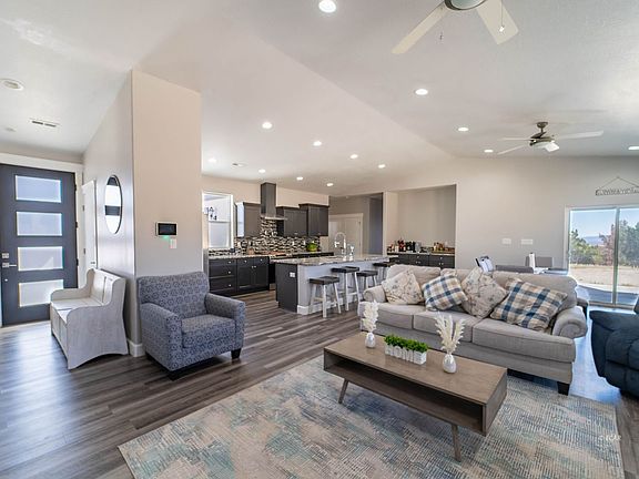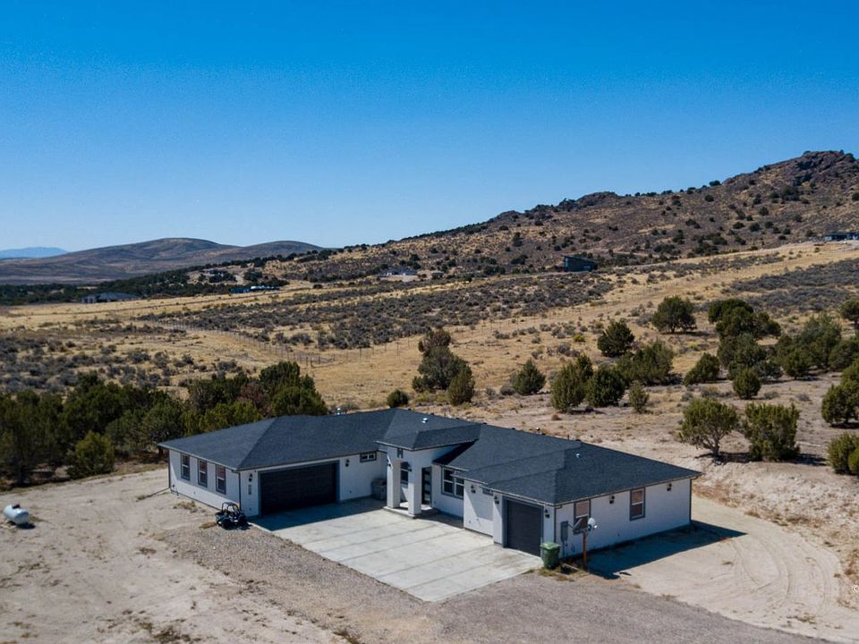 Seated on a 10 acre parcel, this stunning Merwin home offers both privacy and spectacular views of the Rubies! Featuring over 2100 square feet, this modern home has an open concept layout that nicely brings the living room, kitchen and dining area together. The kitchen is fully upgraded with stainless steel appliances, granite countertops, plenty of cabinet space, large walk-in pantry and an oversized refrigerator! The main bedroom is spacious and includes an en-suite that boasts a large soaker tub and a fully tiled shower with a rain showerhead. This home is located outside the Spring Creek HOA and has its own well and septic tank. Don't wait to build- this like-new home is immaculate and turn key ready for you today!