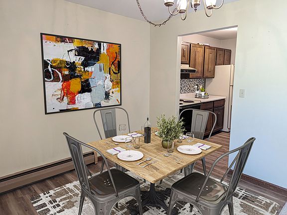 So much cheaper than renting! This ready to move into 2 bedroom upper unit, has basement garage and storage room with extra storage in the hallway. You'll love the updated kitchen, all new flooring, large living room and two spacious bedrooms. Its ideal location makes it easy to access shopping, schools and parks. Don't miss out on this amazing opportunity – schedule a showing today. Storage room in the basement 12' x 6'. Washer and Dryer shared for the 4 units. $240 HOA per month includes: lawn care, water, sewer, trash and snow removal making this very affordable and easy living option. Some of the furniture may be virtually staged, no alterations or changes to the home!