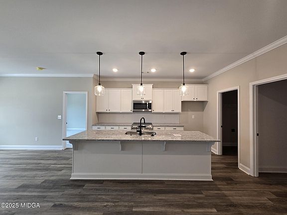 Welcome to 706 Linda Gail Way - an exquisite new construction, one-story brick home that is sure to charm you into calling it your own. Priced at $309,900, this stunning residence spans a spacious 1785 square feet and offers 3 beautiful bedrooms and delightful bathrooms to cater to your needs. Nestled close to Robins Air Force Base, the location is both convenient and alluring. Step inside and lose yourself in the home's open floor plan, which encourages a flow of energy and conversation. The kitchen is a culinary dream, complete with a practical island, shiny stainless appliances, and sleek granite countertops. All the appliances are electric, boosting energy efficiency, and there's a handy pantry for storing your groceries. The LVP flooring in the main areas adds an elegant touch, while the bedrooms are cozily carpeted for your comfort. The primary bathroom boasts a tiled shower and a dual sink vanity, enhancing the room's functionality and aesthetic appeal. Bask in the abundance of natural light that fills every corner of this home or retreat to the formal dining area, which could double as an additional living or office area. Step outside and enjoy the covered back porch - perfect for relaxation or entertaining, with an added grilling pad for those summer barbecues. Not to be overlooked is the full yard sprinkler system with 10 pallets of sod, a practical addition to this beautiful home. The builder concessions include two-inch white faux blinds, a primary bath framed shower door, partial gutters along entries, framed bathroom mirrors, pendant lights over the island area, and an incredible $5000 towards closing costs, making this deal even sweeter. Experience the luxury of county taxes only, and delight in the peace of mind that comes with owning a brand-new home. To arrange a viewing or for further details, please don't hesitate to get in touch. This stunning property is waiting for you to make it your own.