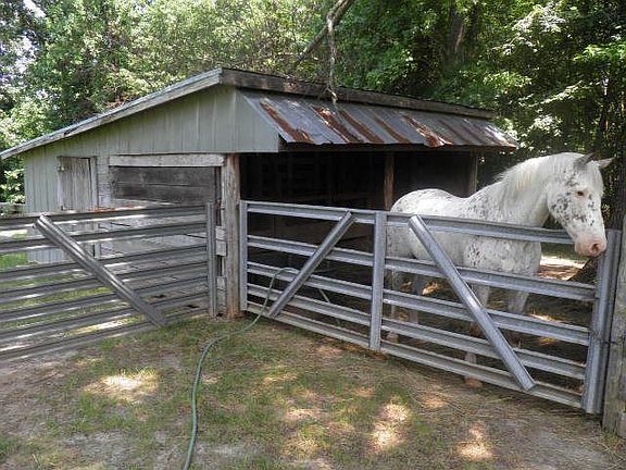 Beautiful land, nearly all open! Fenced for pasture. Several nice barns and carport. Great place for a horse or small farm. Great setting, nice trees.