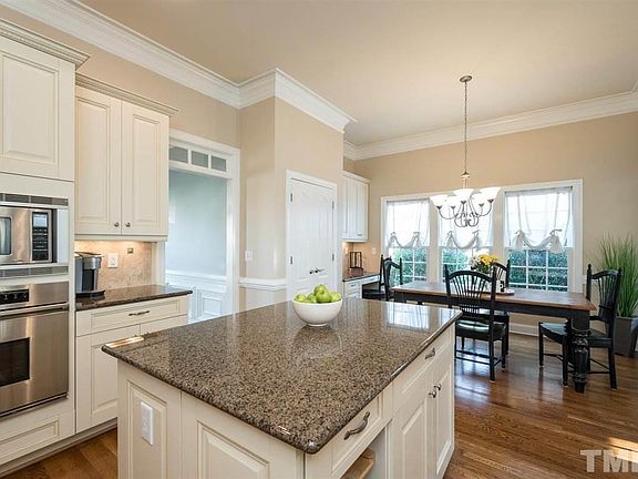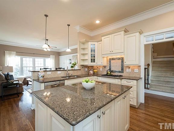 Custom cul-de-sac home w/ expansive front yard & welcoming front porch in West Cary Schools! FIRST floor office. FIRST FLOOR BEDROOM w/ full bath. Side entry 3 CAR GARAGE. Family room boasts Fireplace w/extensive custom cabinetry & wet Bar. Fireplace & custom woodwork in Master BR. Huge 5th Bedroom or Bonus room. Finished 3rd floor w/ extra storage, Irrigation system, screened porch. Neighborhood w/ pool, playground, social activities & direct access to beautiful walking trails. Home Warranty provided!