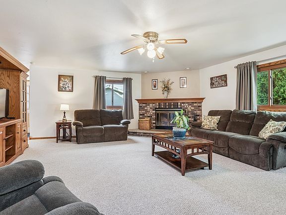 Main floor brLarge picture windowWood-burning fireplaceFormal dining areaWalk-in corner showerDbl sinks