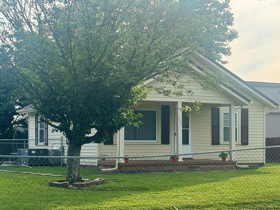 This beautiful bungalow house has a cozy home feeling as soon as you walk inside the door. With a good size living room , 2 bedrooms and a big walk in closet that has been transformed into a cute little girls bedroom. This home includes a dining area and a nice kitchen with good working appliances. It also features a laundry room off of kitchen with an outside door that leads straight onto the huge deck that wraps around from the back to the side of house. Completely fenced in yard with parking for 3 cars. Neat as a pin! Priced to sell quick!!