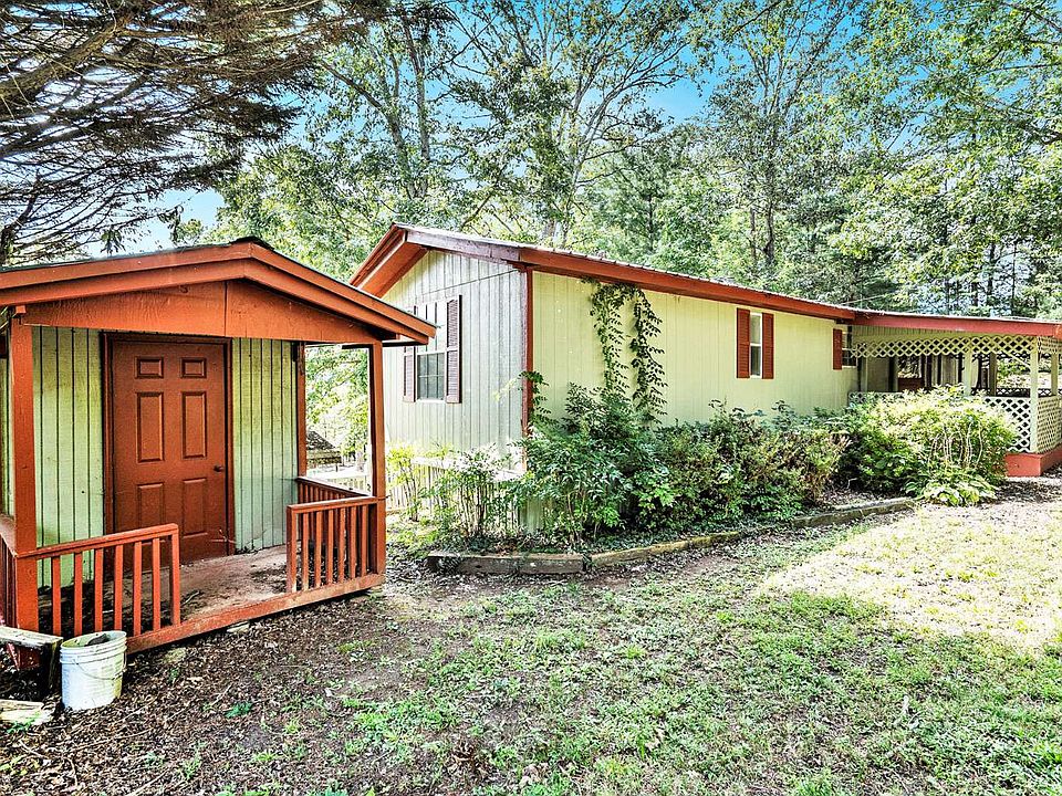 Seller says Let's get this sold!!! 2 Bedroom, 2 Bath Mobile or Modular Home not in a subdivision with a spacious lot and no restrictions!! Home comes with an outbuilding and a carport. The property also has a 110/220 exterior power outlet that can be perfect for an RV or motor home to have on property year round. The home has a nice covered large front porch and a large back deck. It is also located less than a 5 minute drive to down town Hiawassee where you can enjoy everything that north GA has to offer. You can also see the lake from the back deck and hear the music entertainment from the events they have at the arena. The sellers are very motivated to sell!!