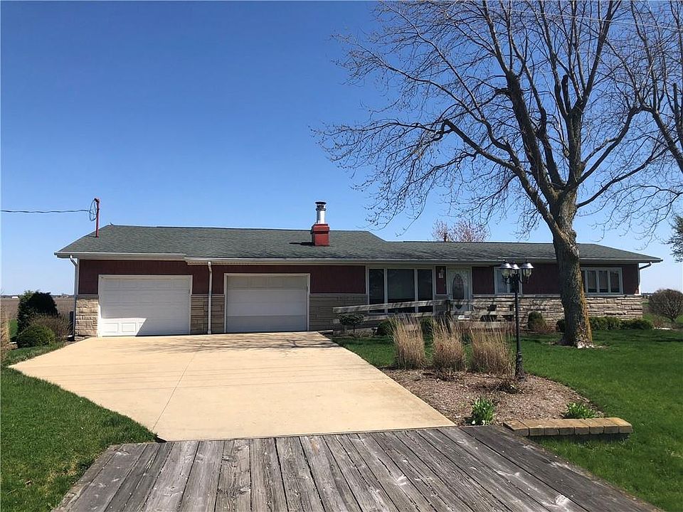 Amazing hard to find Bedford Stone Ranch on approx 2 acres. About 1,700 sq ft of space. Outbuilding. Rear deck. 2 car attached garage. 3 bedrooms. Lots of storage. Nice basement with storage. Huge bonus add on 20x36 family room. Move in ready. Amenities include: gas fireplace, brand new lennox furnice. Newer septic system. Mature landscaping and trees. Solid oak custom made kitchen cabinets and trim around the fireplace. Pull out storage and extra storage everywhere. Owned water softner. All like new appliances stay including freezer in basement. Sump pump with I-phone sensor technology. Back up generator outside. 200 amp service. Reverse osmosis drinking water system. plus beautiful hard wood flooring in the living room. Move in ready! Cissna Park Schools. Buckley address. This quality home was Recently appraised: on the money for a quick turnaround. Turn Key ready! All sq footage and room sizes are estimated.