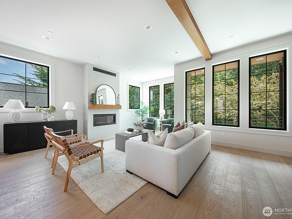 Handsome Northwest traditional home by the respected local builder, Modern Den. Well-built and thoughtfully designed, in a great location, across the street from Woodland Park. Bright main floor with a wall of windows, comfortable living and entertaining spaces for everyone. Large living room, spacious kitchen with island and walk-in pantry. Elegant dining room, office and powder room. Upstairs you will enjoy the primary suite and spa style bath, plus three bedrooms, additional full bath and access to the roof top deck with views. Lower level is for fun! Two more bedrooms, full bathroom, media room, storage and garage. Popular Phinney Ridge neighborhood, nearby coffee, bakeries, excellent dining, Greenlake walks and dog park.