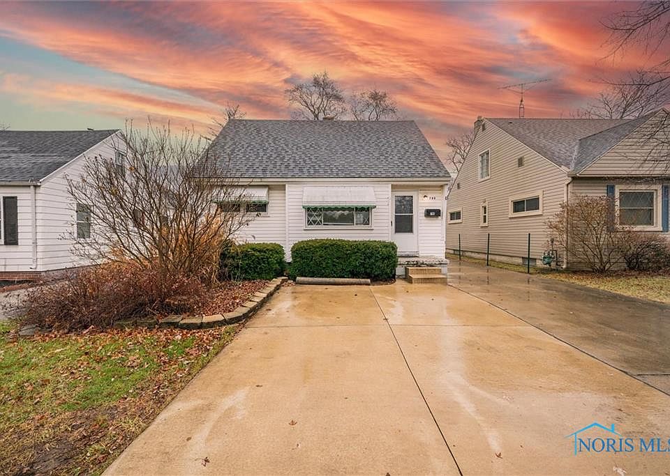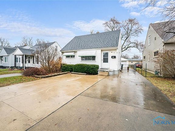 Well-maintained 3-bedroom, 1.5-bath home with 983 sq. ft. Features include two first-floor bedrooms with original hardwood floors, a heated enclosed porch off the kitchen, and a tile floor and backsplash in the kitchen. Upstairs offers a spacious third bedroom. The basement includes a family room and half bath. Updates include vinyl windows, a 4-year-old roof, a 3-year-old furnace, a updated electrical panel, and central air. Low-maintenance vinyl siding. Enjoy a concrete driveway, 1.5-car garage, and fenced backyard. Conveniently located near the University of Toledo. Move-in ready!