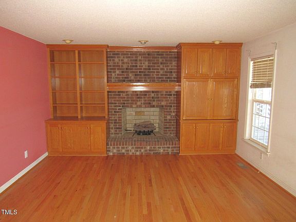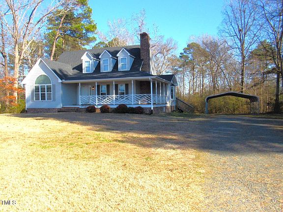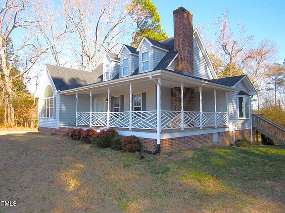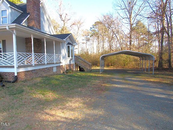 Hard to find FULL basement is unfinished and has a garage/roll up door for storage or that special automobile. 45' of wrap around front porch. Huge 31x12 rear deck and private backyard. Hardwood floors in the living room and formal dining. Custom built-in bookshelves surround the brick fireplace in the living room. Spacious kitchen has a pantry closet, island with an electric cooktop, wall oven, refrigerator, and the breakfast area has a bay window. 1st floor master suite has a cathedral ceiling, Palladian style window, HUGE walk-in closet, and private bath with a double vanity, jetted tub, and separate shower. The 2nd floor has 2 guest bedrooms and large full bath. Laundry area is in the basement. 2 car carport. 2-10 Home Warranty included! A little TLC will make this your dream home! Convenient location to grocery shopping and new Creedmoor city sidewalks!