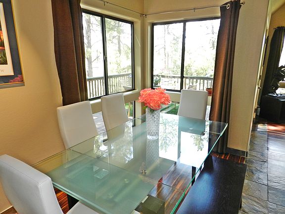 This home in Chaparral Pines features split dual master suites with their own baths on the main level and spacious outdoor living with views to the 9th fairway! Enjoy tranquil summer evenings surrounded by massive Ponderosa Pines as you sit on the expansive balcony and watch the golfers finish the 9th hole. Inside, enjoy the distinctive finishes of this home with slate floors, granite countertops, stainless steel appliances and higher end finishes throughout including decorative barn doors in the master suite. The open kitchen with breakfast bar, looks out to the massive stone fireplace in the Great Room. Downstairs there is an additional guest bedroom with en suite bath, and media room with wet bar. The lower level provides access to a dog run and has space and utilities for a jacuzzi tub. This home could be your perfect second home in the mountains or primary residence with large walk-in closets and extensive downstairs storage. Ponderosa Golf Membership available by separate agreement or choice of membership is available from the club. Come see this beautifully appointed mountain home, you will not be disappointed!