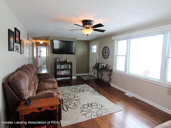Four bedroom ranch, 1.5 bath, 2.5 car garage. Sunlit Kitchen with newer appliances. Large patio door to backyard private setting with rear garage door. Newer wood laminate flooring flows through the living room and bedrooms. Master bedroom is spacious with His/Her walk in closets. Lower level is partially finished with a super sized bedroom. Roof new in 2019.