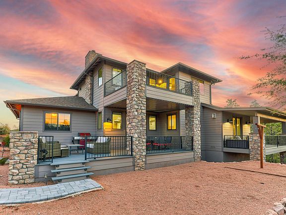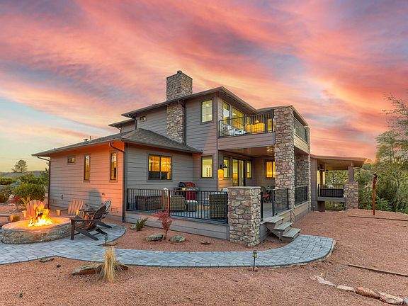 BEAUTIFUL move in ready home! Gorgeous views of the rim from the upstairs deck and located on a quiet cul-de-sac. Light and airy with lots of designer touches throughout. Fireplace in great room and master bedroom. Built in 2014 this very gently used home features split 3 bedroom plus office on main level. 3 car garage. Large loft for overflow guests or a great place for the kids to hang out. Wood floors in main living areas and carpet in the loft and bedrooms. Custom built dining table and bench seating stays with the home. You'll enjoy sitting by the firepit at night and viewing all the stars. Chaparral Pines offers so many amenities including community pools, hot tub, spa, tennis, pickleball, fitness center and classes, clubhouse restaurant plus access to 2 nationally ranked golf courses. You'll also enjoy access to The Rim Club amenities. Guard gated and patrolled. Golf course memberships are available at both clubs.