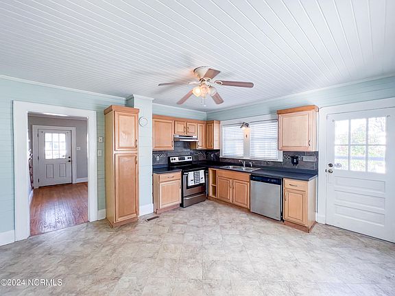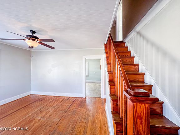 Charming home waiting for new owners to call it theirs! From the rocking chair front porch inside the LR offers decorative ceilings, hardwood floors, and plenty of natural light. The kitchen has a built in pantry, stainless steel appliances, eat in area and overlooking the back yard. 2 bedrooms downstairs with full bath. Wooden tread stairs lead up to additional 2 bedrooms. Large backyard with a paver patio and room for family gatherings. Beautiful blooms throughout the year around the yard only add to the charm of this home.