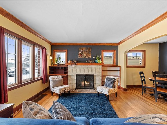 Step into timeless elegance w/ this classic red brick home featuring original hardwood floors & vintage charm throughout. The inviting living room boasts a cozy wood-burning fireplace framed by built-in treasures—a roll-top desk & China hutch. The space flows seamlessly into the dining room, leading to a thoughtfully updated kitchen w/ modern touches, including newer cabinets, sleek countertops, stainless steel appliances, and a delightful breakfast nook perfect for morning coffee. The main floor offers 2 bedrooms, one, an expansive retreat surrounded by original wood-framed windows on 3 sides, flooding the space with natural light. Basement with a 3rd bedroom w/ walk-in closet, family room, laundry room and 2nd full bath & a storage room.