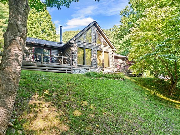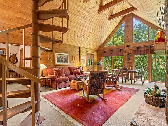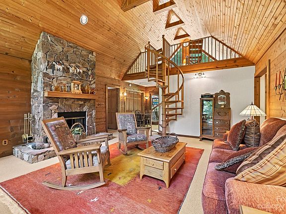 Western D-Log cedar home by Canada Log Homes. Very well-maintained home and property. Private location, only 10 minutes to I26 corridor and Mars Hill City limits. State maintained road and all paved access. Open floor plan that offers 2 bedrooms, 2 baths and a bonus room w/closet on one level and loft area perfect for office or kids play area. Stone wood-burning fireplace, Trance central heat and air, new roof 2013, wrap-around deck, beautifully landscaped. Loft area perfect for office space.Home will convey mostly furnished. Chestnut barn in excellent condition with small kitchenette and full bath w/shower, separate hot water heater, stairs to 6 stalls for livestock. John Deer GT235 tractor/38" mulch mowing deck and 4X4 Cub Cadet side by side can be purchased separately. 28 acres has road to top of mtn, picnic table and screened in porch and deck. Cleared trails, apple trees and chestnut trees. Small stream and Old Murray Mtn Rd frontage. This property is immaculate inside and out.