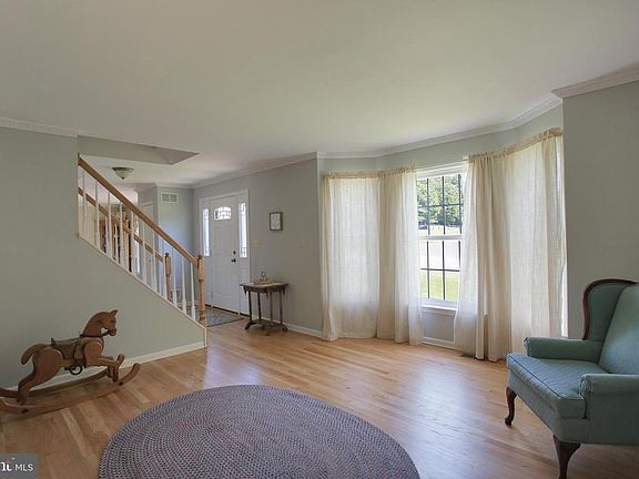 Fall in love with this 4 bedroom colonial with a 2 car garage on 1.66 acres. Brand new heat pump system!! Lovely entrance with large coat closet. Hardwood flooring, extra moldings and bay windows in the front formal rooms. Open eat-in kitchen with island and bay window breakfast nook opens to your family room with gas fireplace. Oversized deck and level yard that extends into the woods to a small stream. Plenty of wildlife to watch. Hardwood steps lead to the upper level featuring bamboo hardwood flooring in the bedrooms. Owner's suite with walk in and 2 extra closets, double vanity, shower, and soaking tub. Hall bath also has a double vanity. The lower level is ready to be finished with a nice walk out sliding glass door. Call today to see this lovely home.