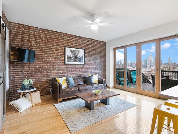 Direct, unparalleled views of Manhattan and Empire State Bldg from private deck and yard (to which you have exclusive use). Floor to ceiling glass doors lead to spacious deck with area for gas connected grill. Exposed brick and hardwood floors throughout. Quartz white countertops. NYC bus stops at door. Great schools ranked in the 98th percentile of all NJ. Short walk to parks and NJ LightRail. Come see why the Union City is hot! No Fees! Owner pays for trash and sewer. Renter pays electric, gas, water, & internet.