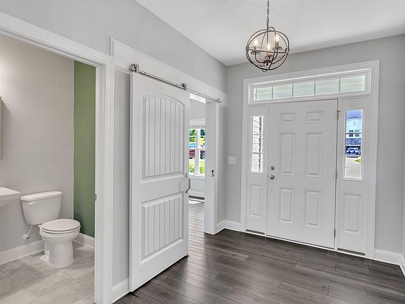 This Holden Creek beauty is too good to miss. Situated in a cul- de-sac and backing to open space, you can't beat this lot. Inside you'll be delighted by the large kitchen with beautiful marble countertops and ample storage and pantry space. Low maintenance wide plank flooring throughout the main living spaces makes cleaning a breeze. Working from home? This floor plan features a main floor flex space, perfect for either a dining room or a large office. The open concept living, dining and kitchen layout features easy access to the covered patio. Making for the perfect entertaining space. Upstairs you'll find a large primary suite with a luxurious bathroom, complete with a jetted tub and separate shower. Three additional bedrooms can be found upstairs. This home is ready for your furry friends with an invisible fence already installed. Enjoy the community pool and close proximity to downtown Youngsville.